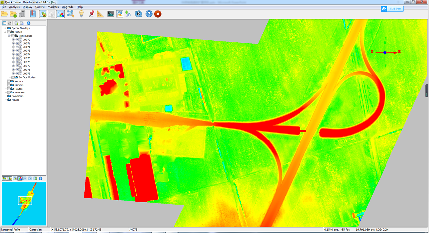 项目要求:街景数据、分类后的抽稀点云数据,要求旧路平面精度 5cm ,高程精度 3cm , 其余部分要求平面高程精度均为 10cm